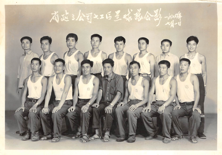 1973年三公司青年團員在公司機關大院內籃球場(蕪湖路現址)合影